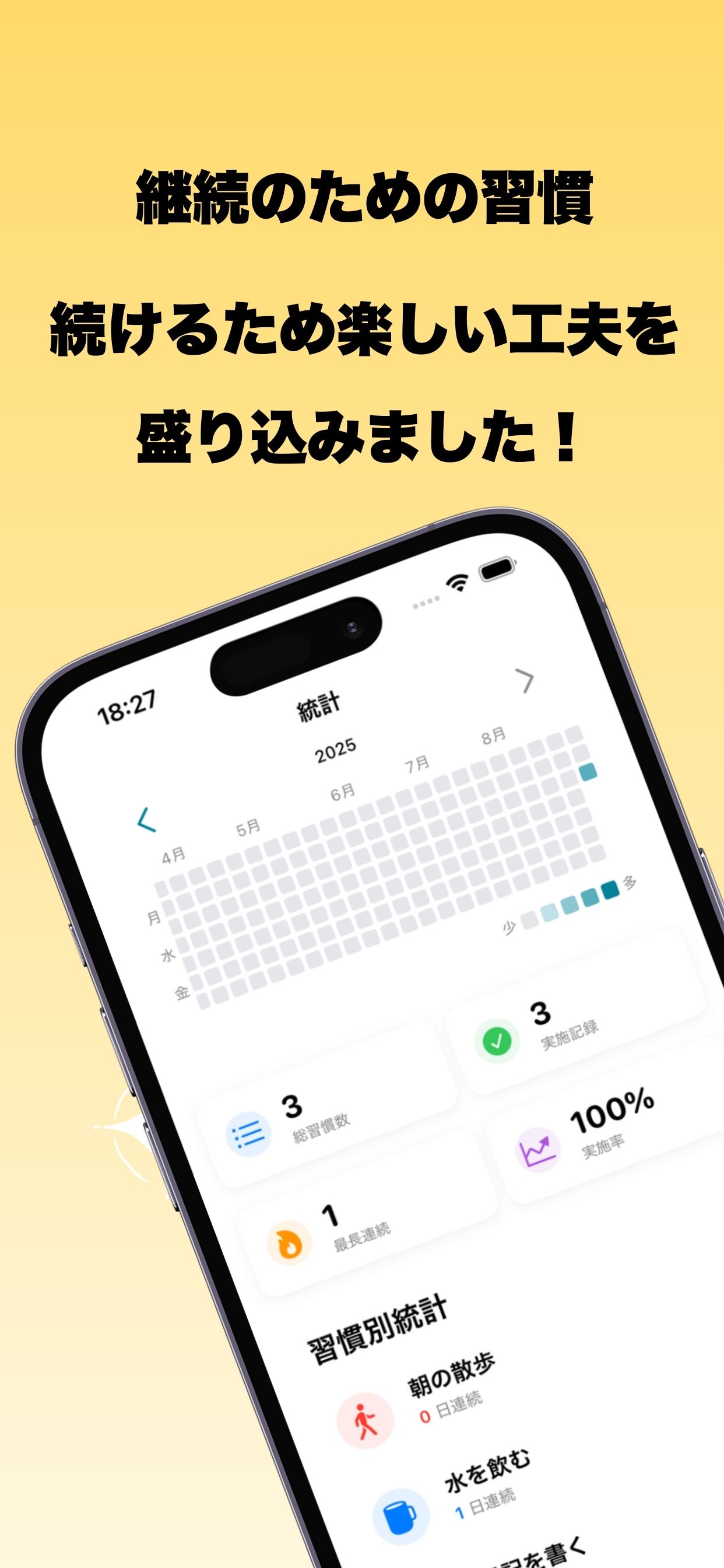 Habin is an iOS app that enriches your everyday life by helping you build habits. With a simple, beautiful design and intuitive interactions, staying consistent has never been more enjoyable.